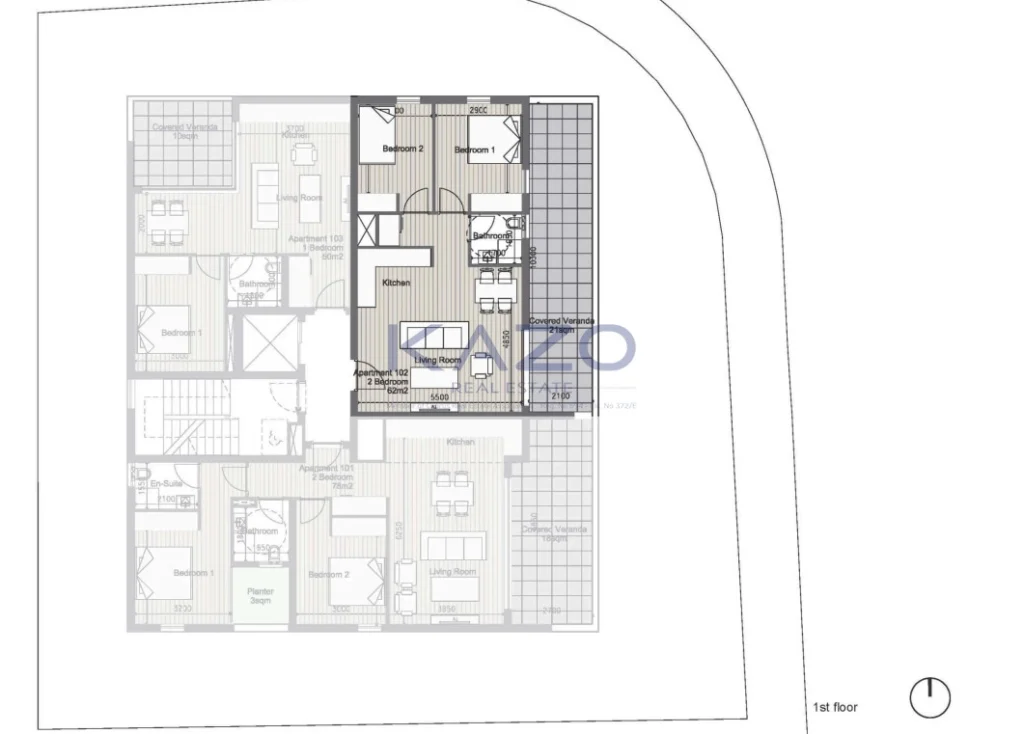 The apartment is proudly advertised by Kazo Real Estate, a trusted name in the property market. Contact us for more information or to arrange a viewing.