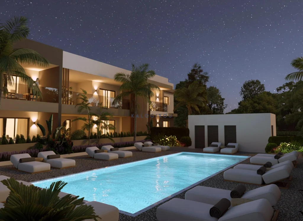 The apartment is a part of a complex of two residential blocks. Each block boast 12 x 1-, 2-, 3-bedroom apartments. The complex enjoys common swimming pool.
