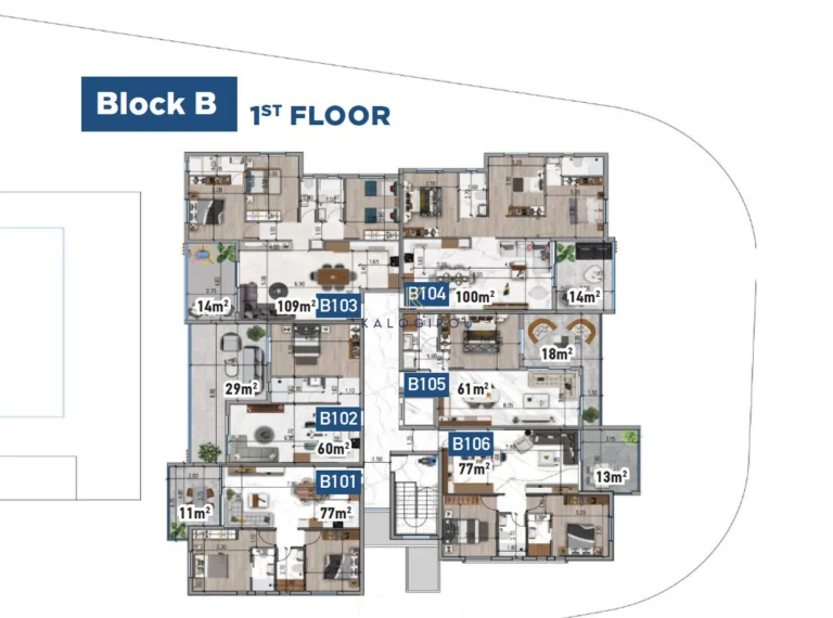 The apartment is a part of a complex of two residential blocks. Each block boast 12 x 1-, 2-, 3-bedroom apartments. The complex enjoys common swimming pool.