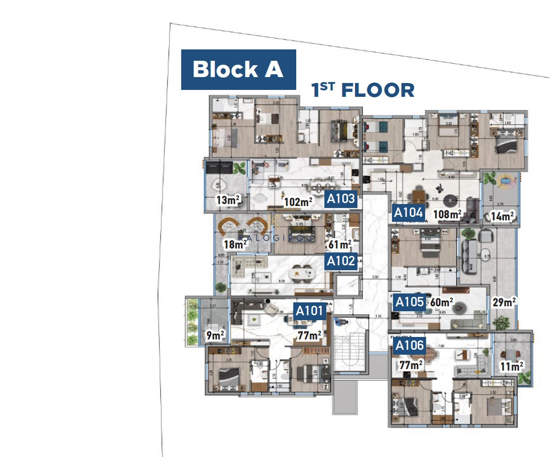 The apartment is a part of a complex of two residential blocks. Each block boast 12 x 1-, 2-, 3-bedroom apartments. The complex enjoys common swimming pool.