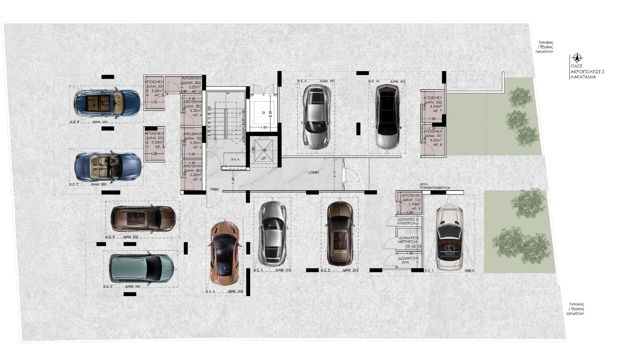 Apartment for sale in Lakatameia, Nicosia. It is a three-storey building with a total of 9 apartments: 3 one-bedroom apartments, 3 two-bedroom apartments and 3 three-bedroom apartments. Each apartment combines high-end design, finishes and the latest trends using high-quality thermal insulation materials, finishes and plumbing. The apartments have functional layouts and spacious verandas. A photovoltaic system will be installed. Convenient storage rooms and parking spaces are provided for each apartment.