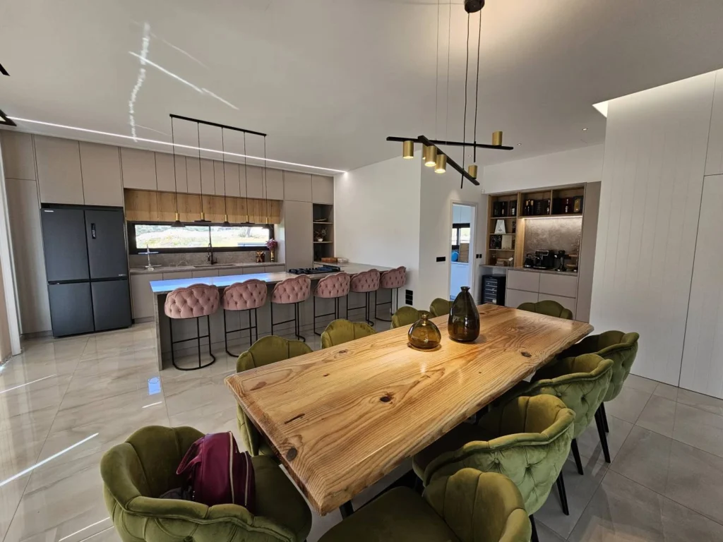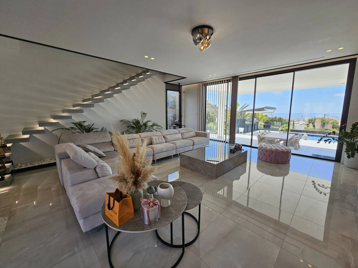 For sale a 4 bedroom cozy villa with a swimming pool in the area of Agios Athanasios with stunning panoramic views of the city, mountains and the sea. The villa consists of 4 bedrooms, 4 bathrooms, 3 kitchens, a full-fledged studio on the 3rd floor and much more. The villa is fully furnished and equipped with household appliances, there are air conditioners, underfloor heating, a photovoltaic system for 5 kW electricity, an alarm system and much more for the most comfortable life.
