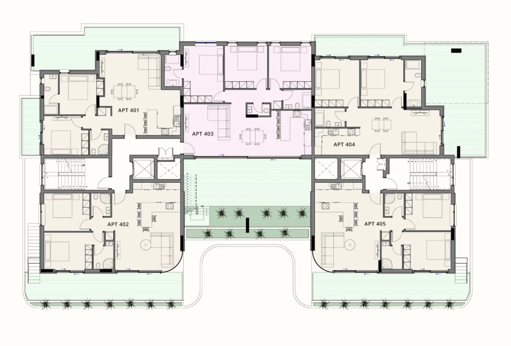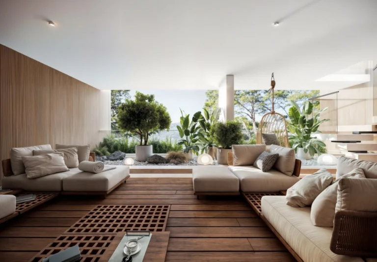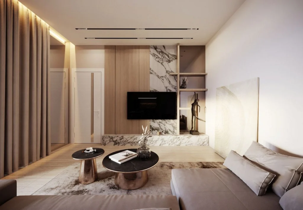 The building offers a thoughtfully composed collection of one-, two-, and three-bedroom residences, each designed with open-plan layouts that enhance space, airflow, and natural illumination. Interiors are shaped around clean geometry and a warm material palette, creating an atmosphere that feels both contemporary and inviting. Spacious verandas extend the living areas outdoors, while selected penthouses introduce private rooftop spaces with jacuzzis, forming a more elevated lifestyle experience.