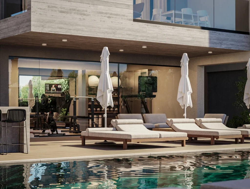 At the heart of the project lies a beautifully landscaped courtyard featuring a swimming pool, gym, sauna, and tranquil green areas designed for relaxation and well-being. These shared spaces encourage a lifestyle shaped by comfort, ease, and quiet enjoyment.