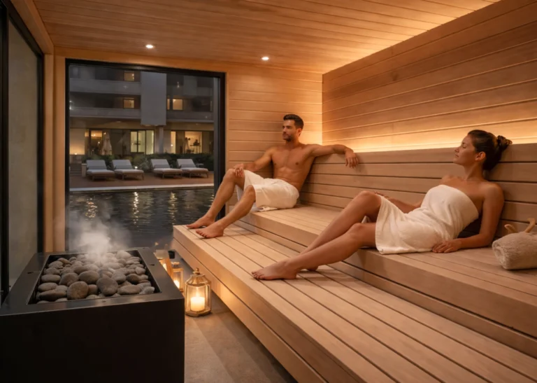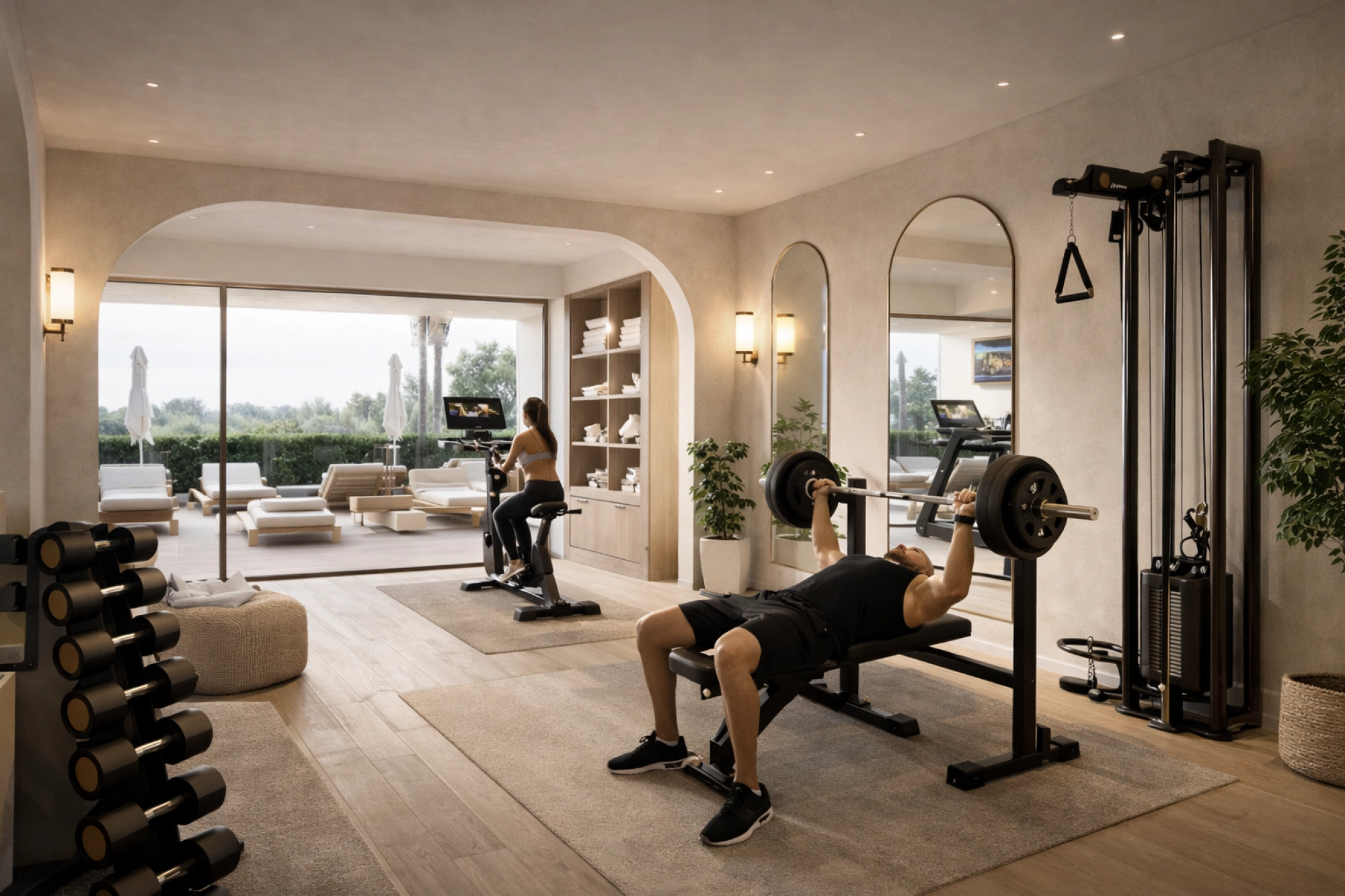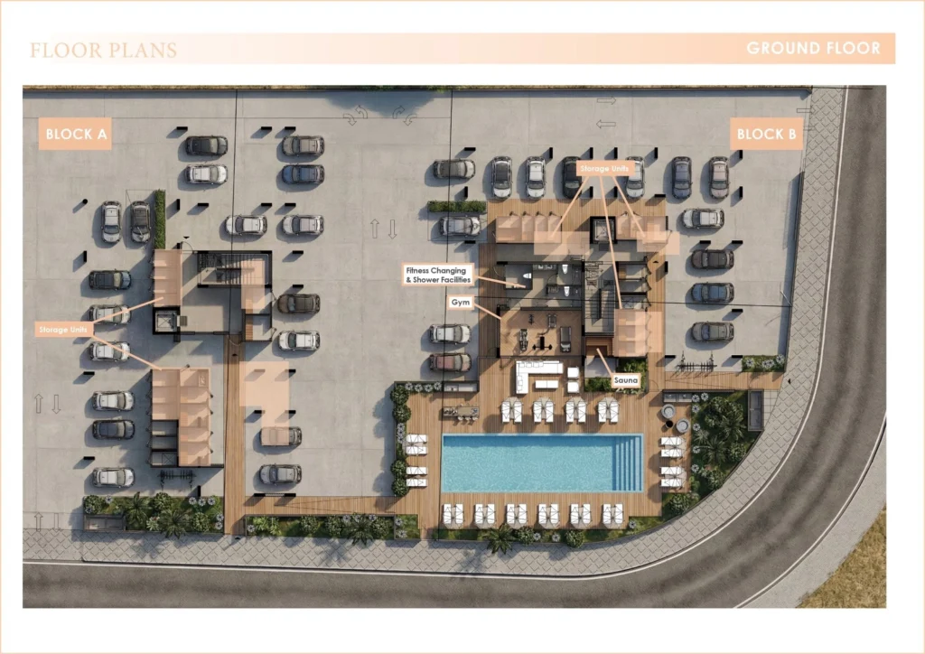 At the heart of the project lies a beautifully landscaped courtyard featuring a swimming pool, gym, sauna, and tranquil green areas designed for relaxation and well-being. These shared spaces encourage a lifestyle shaped by comfort, ease, and quiet enjoyment.
