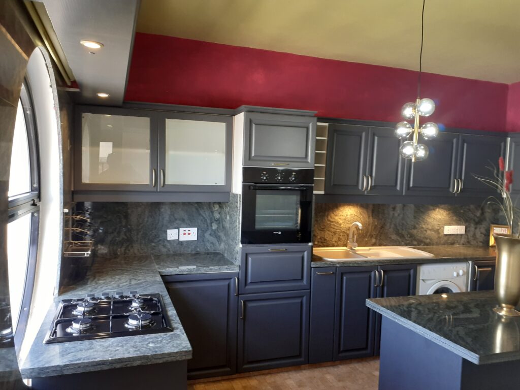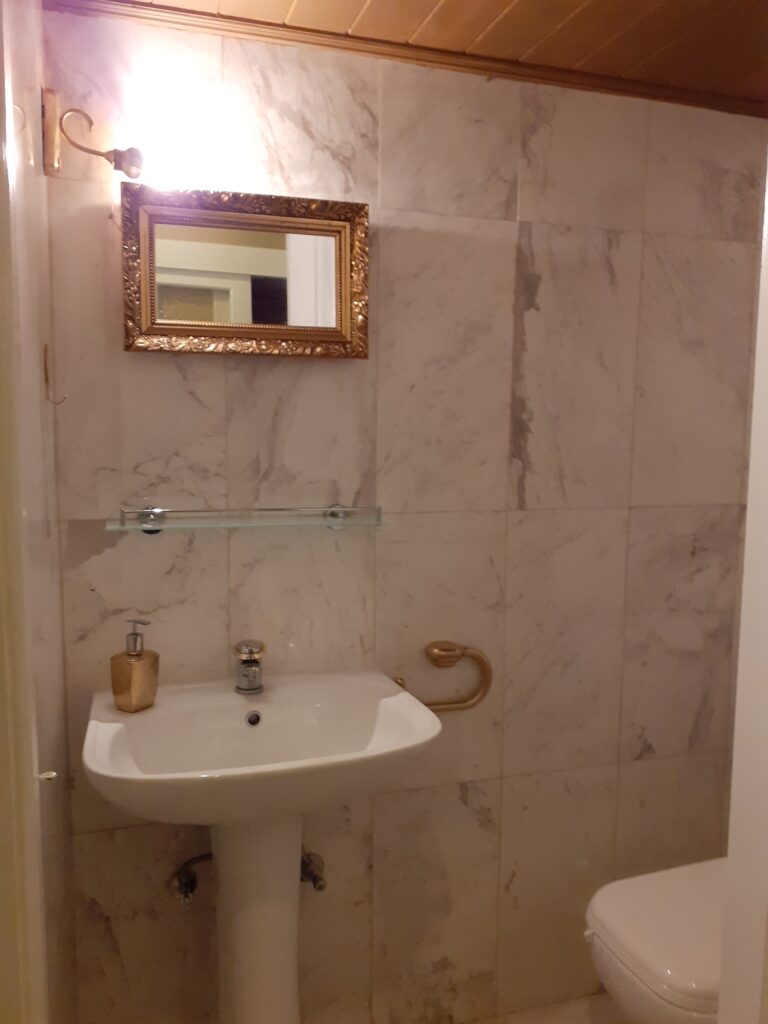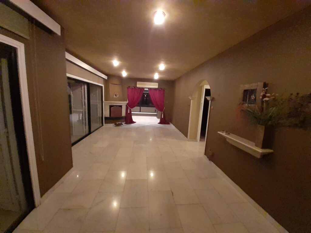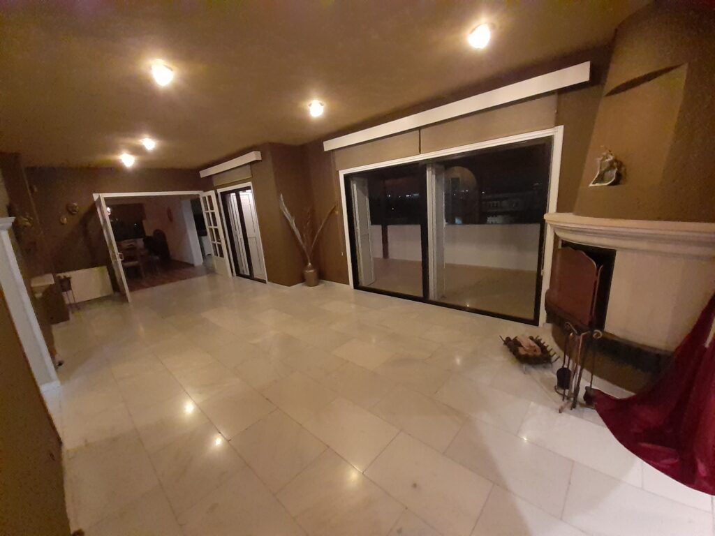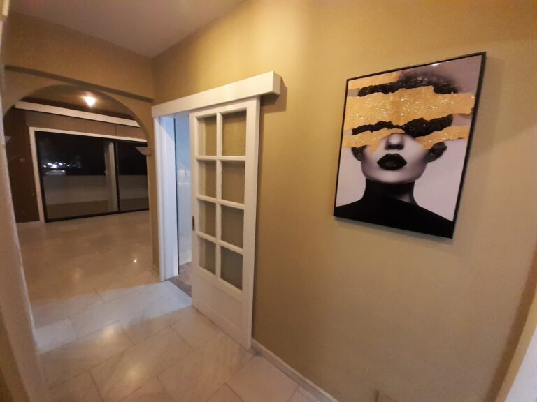 Step into a refined living area boasting exquisite white marble flooring and a cosy fireplace, perfect for relaxing evenings. The spacious layout seamlessly flows into a large covered veranda, offering breathtaking city and mountain views—ideal for entertaining guests or enjoying family gatherings. – **Dining and Kitchen:** The separate Art Deco-style dining room pairs beautifully with an aesthetically pleasing granite kitchen, featuring a dedicated coffee/tea and breakfast area that can double as a study or workspace. – **Bedrooms and Bathrooms:** The apartment includes three well-appointed bedrooms, complemented by a beautifully designed Art Nouveau-style bathroom crafted from marble and granite. A convenient guest lavatory is located in the entrance hall, enhancing both privacy and functionality.