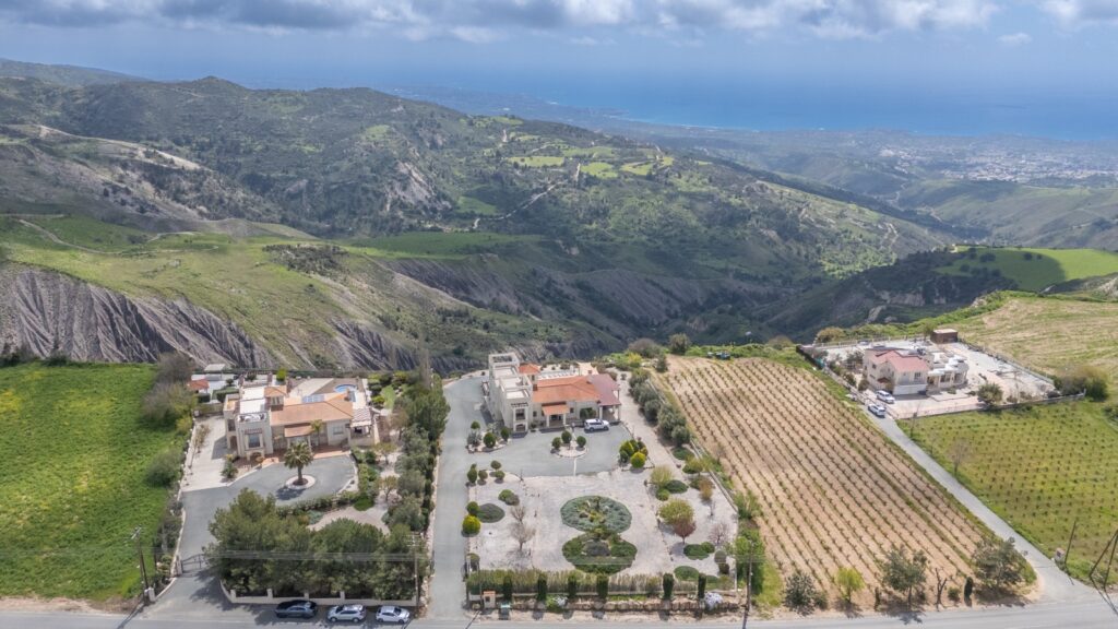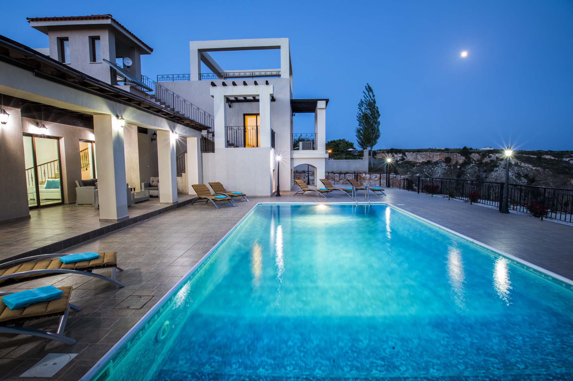 Perched high on the serene hills of Peyia, just before Kathikas village, this villa offers a breathtaking, panoramic view over the Paphos coastline.