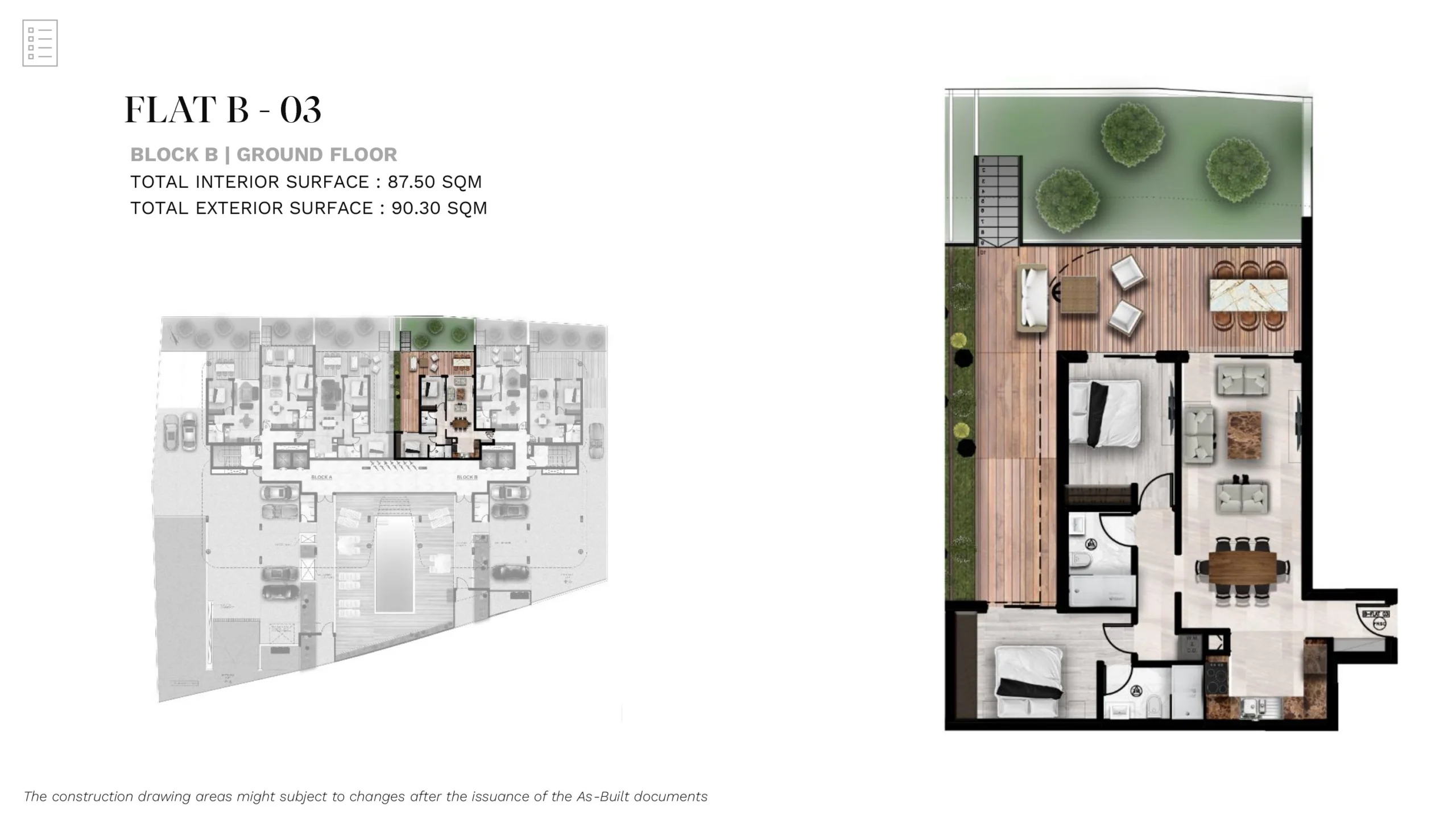 The apartment features a bright and well-planned layout, offering spacious and functional interiors that maximize natural light and everyday comfort. The open-plan living and dining area connects seamlessly to the private garden, creating an extended living space ideal for relaxation, outdoor dining, or entertaining.