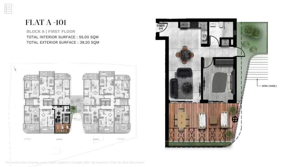 A modern 1-bedroom apartment located within a secure gated residential development in the peaceful outskirts of Larnaca, in the area of Aradippou. Just minutes from the city center, the project is designed to combine contemporary comfort with relaxed Mediterranean living.