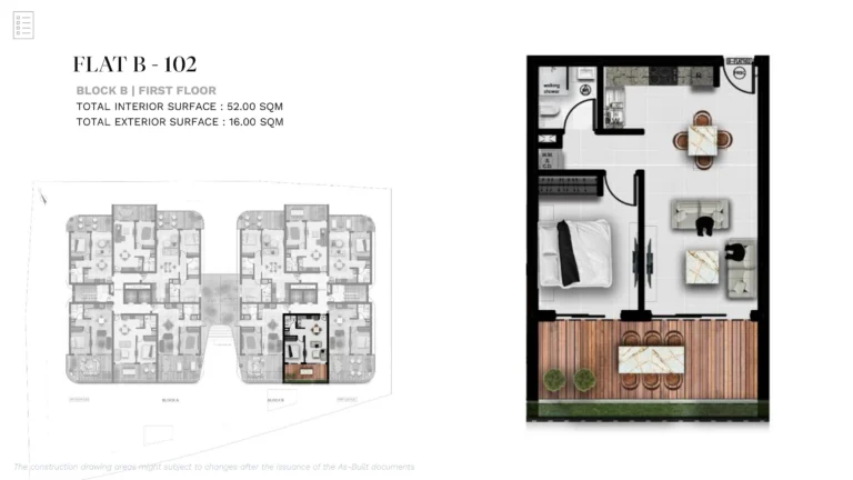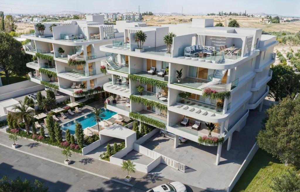 A modern 1-bedroom apartment located within a secure gated residential development in the peaceful outskirts of Larnaca, in the area of Aradippou. Just minutes from the city center, the project is designed to combine contemporary comfort with relaxed Mediterranean living.