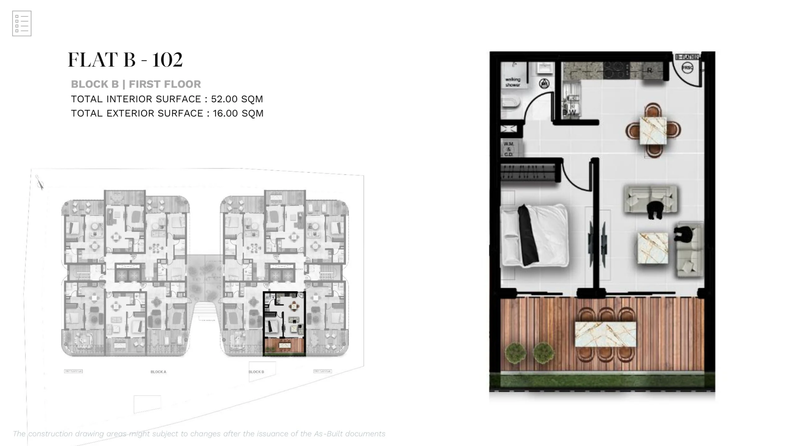 • Internal Area: 52 m²