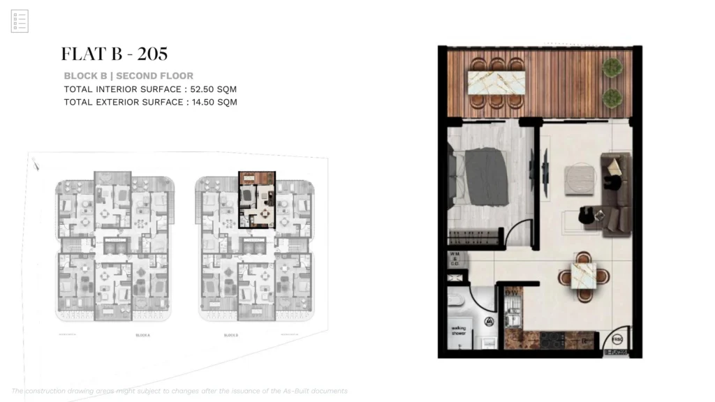 A modern 1-bedroom apartment located within a secure gated residential development in the peaceful outskirts of Larnaca, in the area of Aradippou. Just minutes from the city center, the project is designed to combine contemporary comfort with relaxed Mediterranean living.
