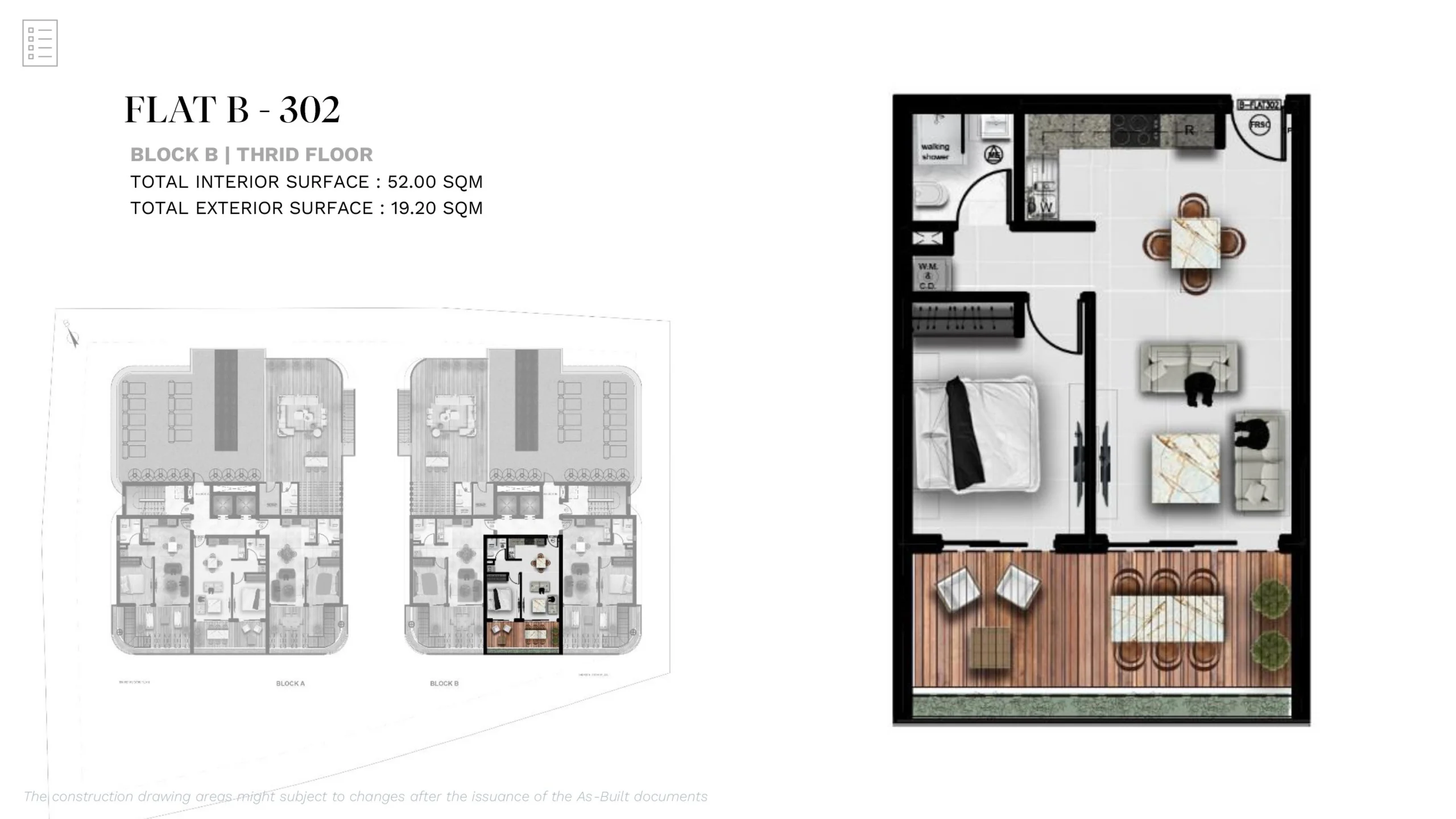 • Internal Area: 52 m²