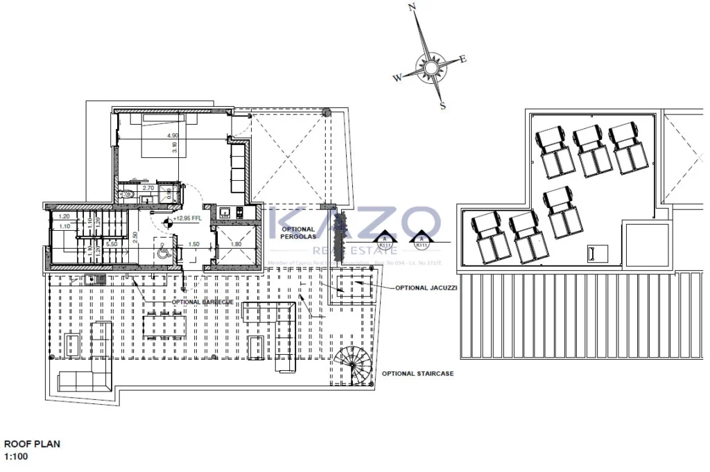 For sale is a modern apartment currently under construction in the sought-after area of Kato Paphos. This spacious top-floor residence offers a generous internal area of 112 m², with a thoughtful layout featuring three comfortable bedrooms and three contemporary bathrooms. The apartment is accessible by elevator and boasts an open-plan living space designed for modern living.
