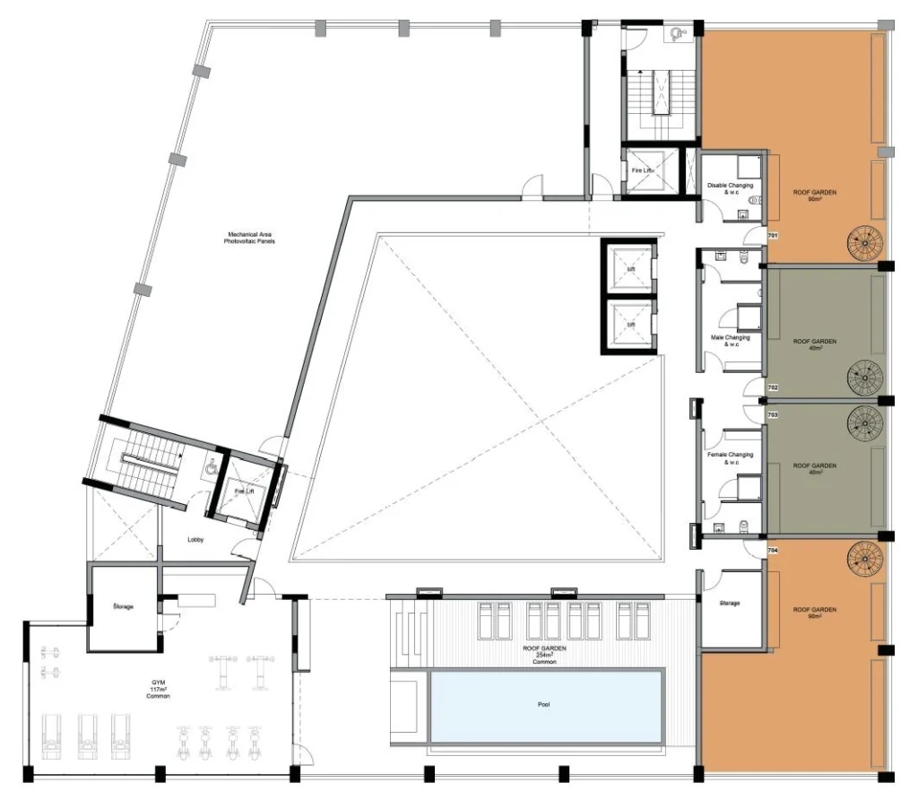 Residents also benefit from shared rooftop facilities, including a communal swimming pool and gym, offering additional space for relaxation and wellness with elevated views.