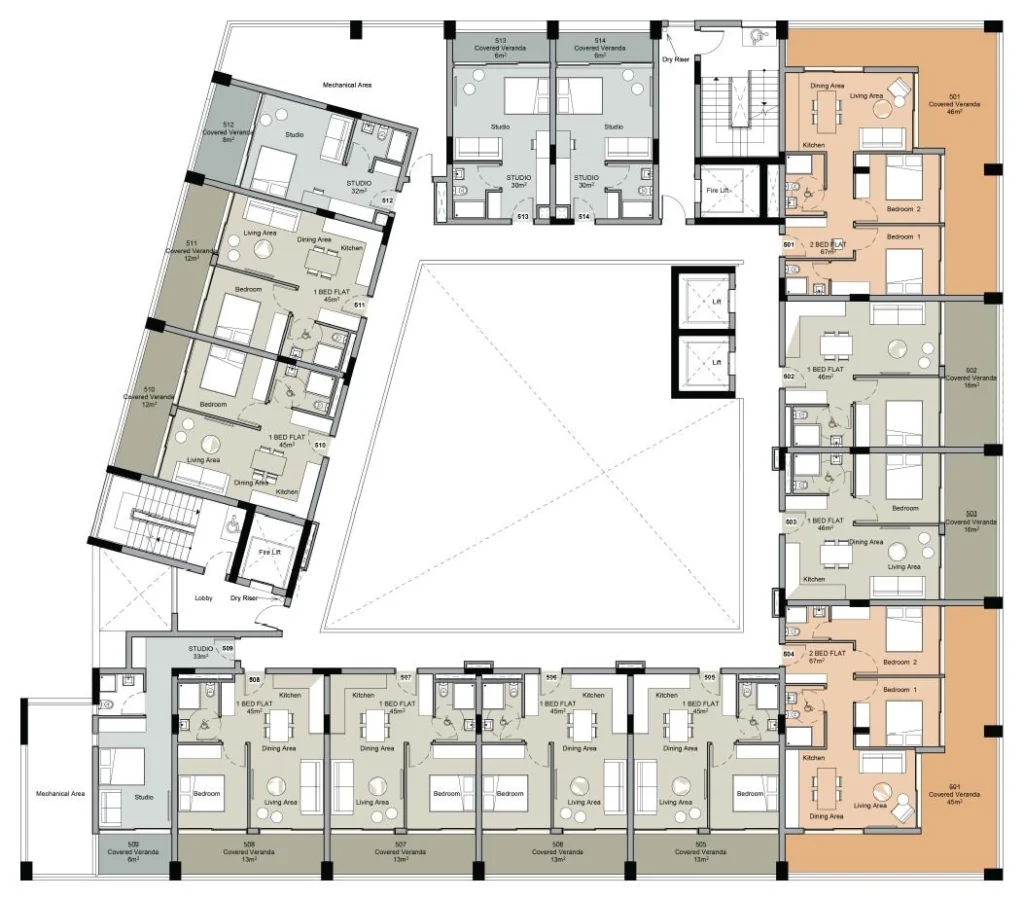 The apartments are designed with a strong focus on practicality, comfort, and contemporary urban living. Each residence features carefully planned layouts that optimise space, natural light, and everyday functionality, creating interiors that feel both efficient and welcoming. Clean architectural lines, modern finishes, and thoughtfully selected materials contribute to a cohesive living environment that balances style with durability. Every detail is considered to support a comfortable lifestyle, offering residents well-designed homes suited to the rhythm of modern city living.