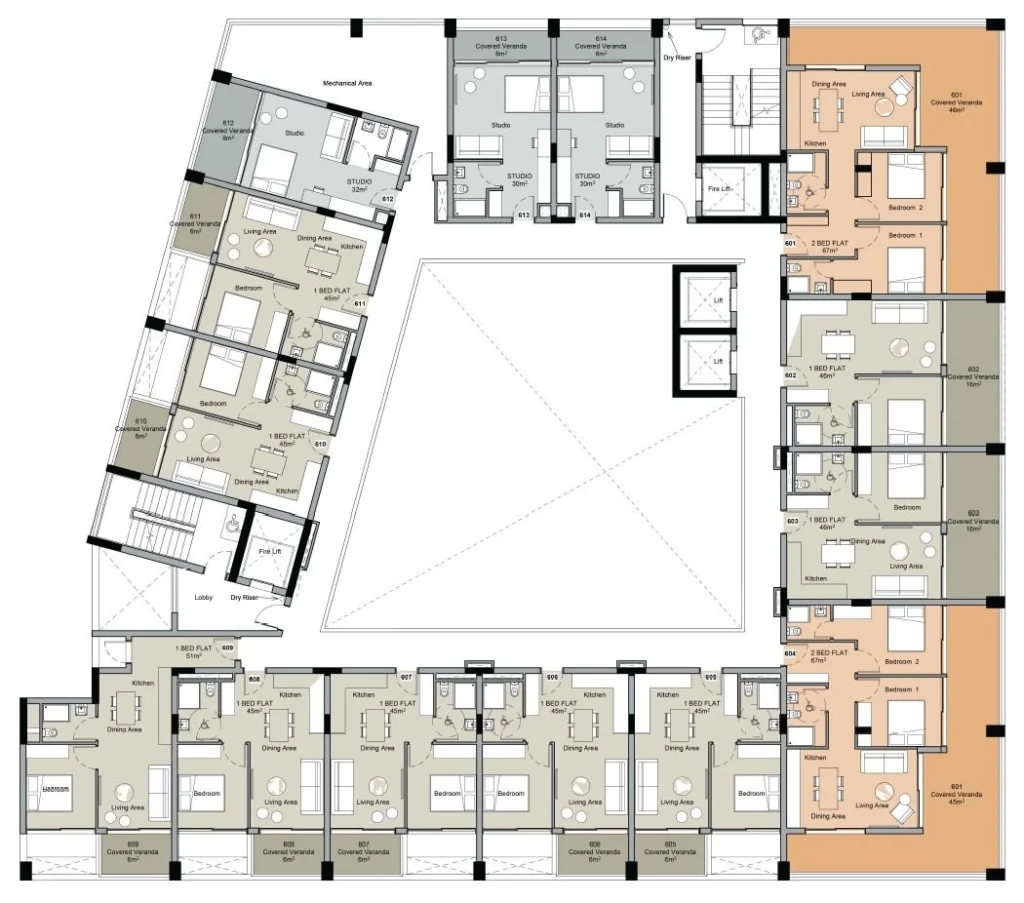The apartments are designed with a strong focus on practicality, comfort, and contemporary urban living. Each residence features carefully planned layouts that optimise space, natural light, and everyday functionality, creating interiors that feel both efficient and welcoming. Clean architectural lines, modern finishes, and thoughtfully selected materials contribute to a cohesive living environment that balances style with durability. Every detail is considered to support a comfortable lifestyle, offering residents well-designed homes suited to the rhythm of modern city living.