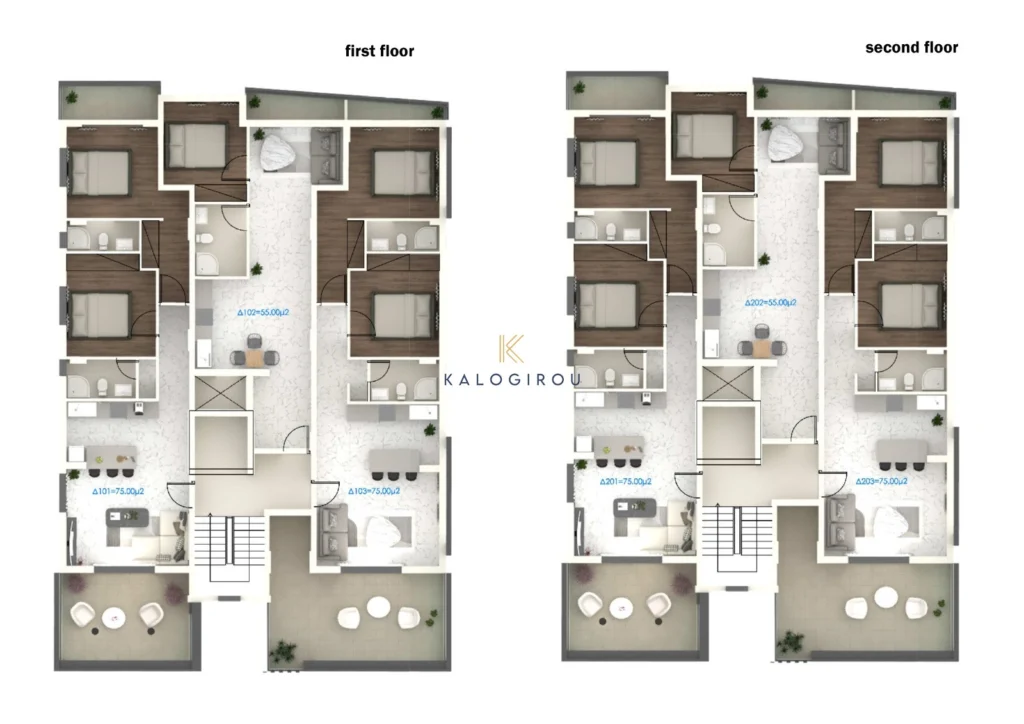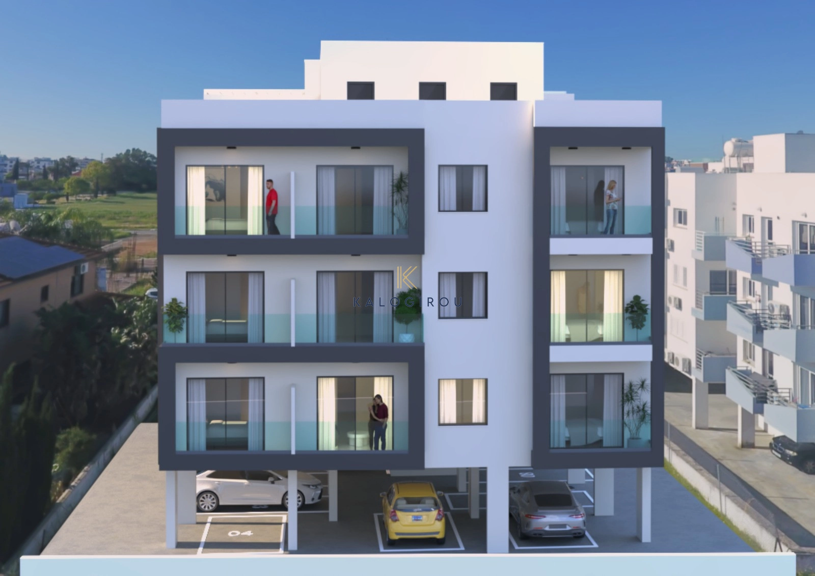 Modern ,2nd Floor Apartment for sale in Vergina area, Larnaca Town. The property consists of an open-plan kitchen and living room, two bedrooms, with the master bedroom featuring an en-suite bathroom, and one main bathroom. Additionally, the apartment includes a private parking space and a storage room on the ground floor of the building.