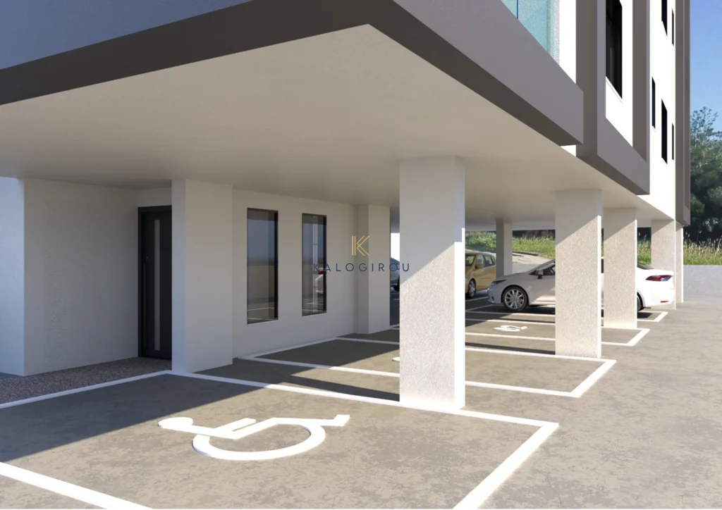 Modern, One Apartment for sale in Vergina area, Larnaca Town. The property consists of an open-plan kitchen and living room, one bedroom, and one main bathroom. Additionally, the apartment includes a private parking space and a storage room on the ground floor of the building.