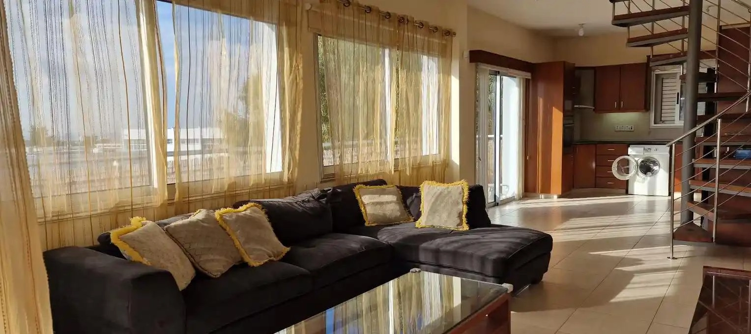 For sale a two-bedroom penthouse with an area of 200 m2 in the Town Center area, Paphos. The penthouse includes 3 bedrooms, 2 bathrooms, a kitchen, a spacious living room, balconies, a game room, as well as access to a spacious terrace with a roof garden and a BBQ area. The property is unfurnished, equipped with an air conditioning system in all rooms, an alarm system, a water pressure system with filtration, a solar water heater, double glazing and an elevator. The penthouse occupies the 4th floor, has a covered parking, was built in 2012, and has a well-thought-out layout with an internal area of 120 m2 and external spaces of about 80 m2, creating comfortable living and recreation conditions with panoramic views of the city. The residence is located in the city center, with convenient access to the main roads, close to schools, supermarkets, private clinics, pharmacies and shops.