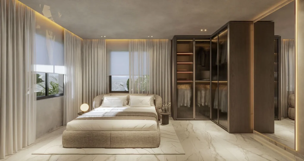The project comprises three contemporary blocks featuring stylish one- and two-bedroom apartments. Each residence is thoughtfully designed with spacious bedrooms and modern bathrooms, combining practicality with comfort. High-quality interior finishes add a sophisticated touch, while large double-glazed windows fill the spaces with natural light, creating bright and inviting interiors. The kitchens are fitted with sleek cabinetry, perfectly balancing aesthetics and functionality.
