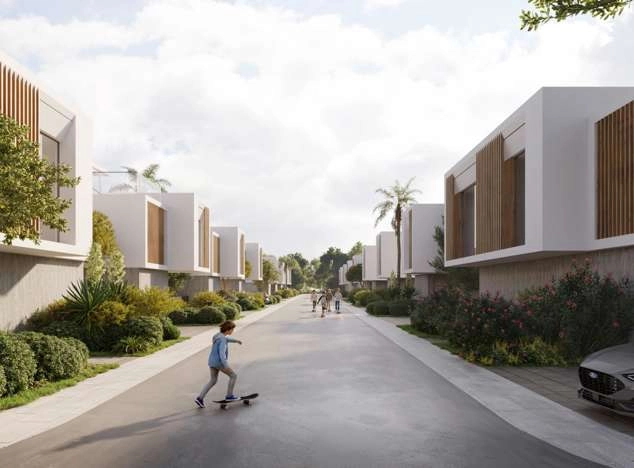 The development features spacious 2 and 3-bedroom apartments alongside an exclusive collection of 3 and 4-bedroom villas, each with its own private swimming pool. The architectural vision emphasizes both elegance and functionality, featuring generous 3.10m ceiling heights in living areas, parquet flooring throughout, marble-finished bathrooms, and underfloor central heating.