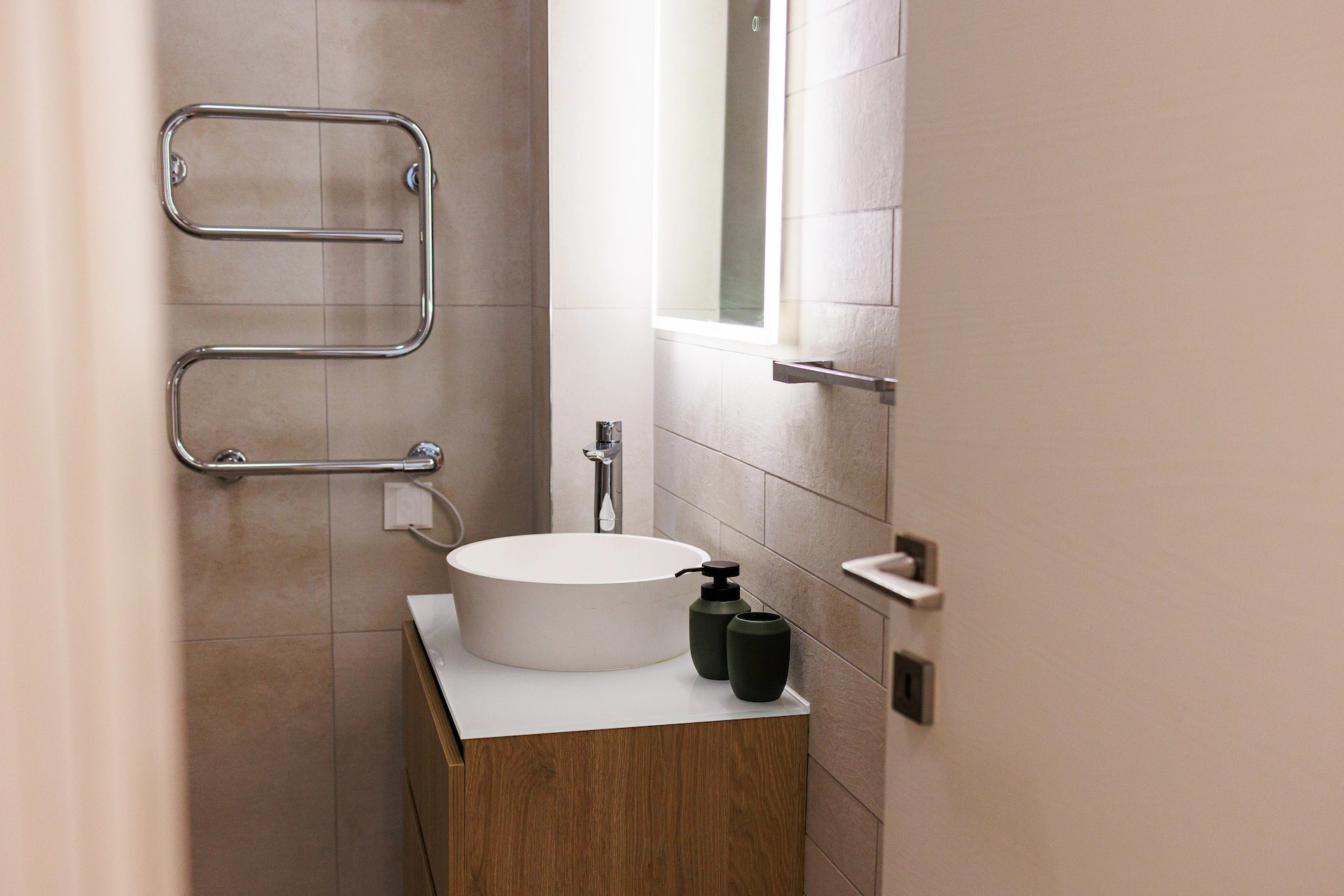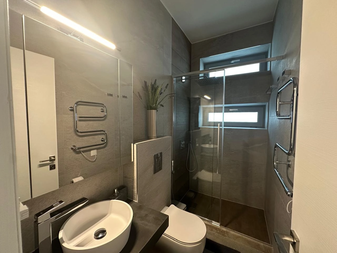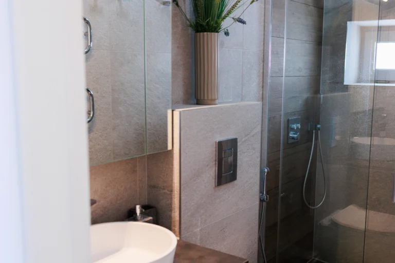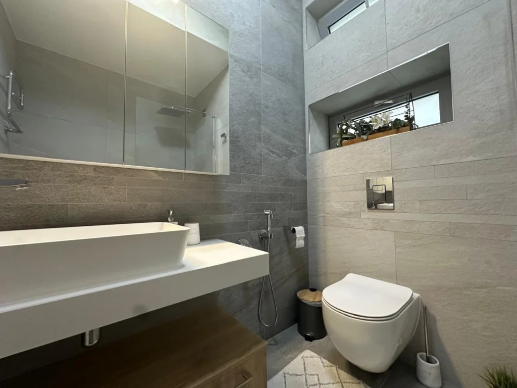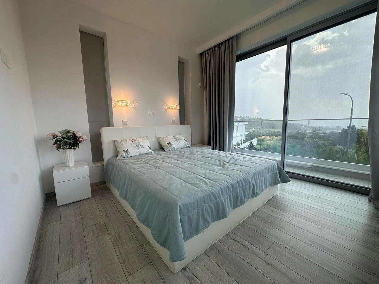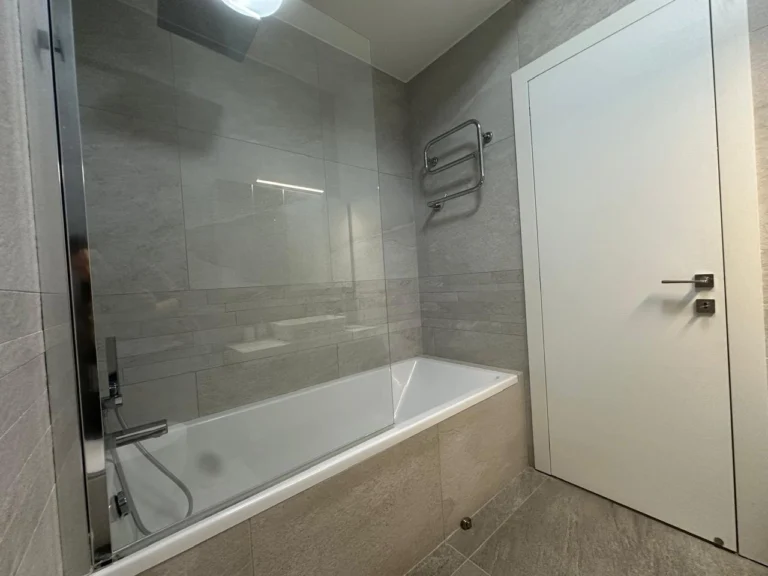 Three well-proportioned bedrooms with spacious wardrobes crafted from top-quality materials. The master bedroom features a walk-in wardrobe, en-suite shower, and private balcony with sea views, while an additional bedroom also benefits from a balcony. A main bathroom with bathtub serves the remaining rooms.