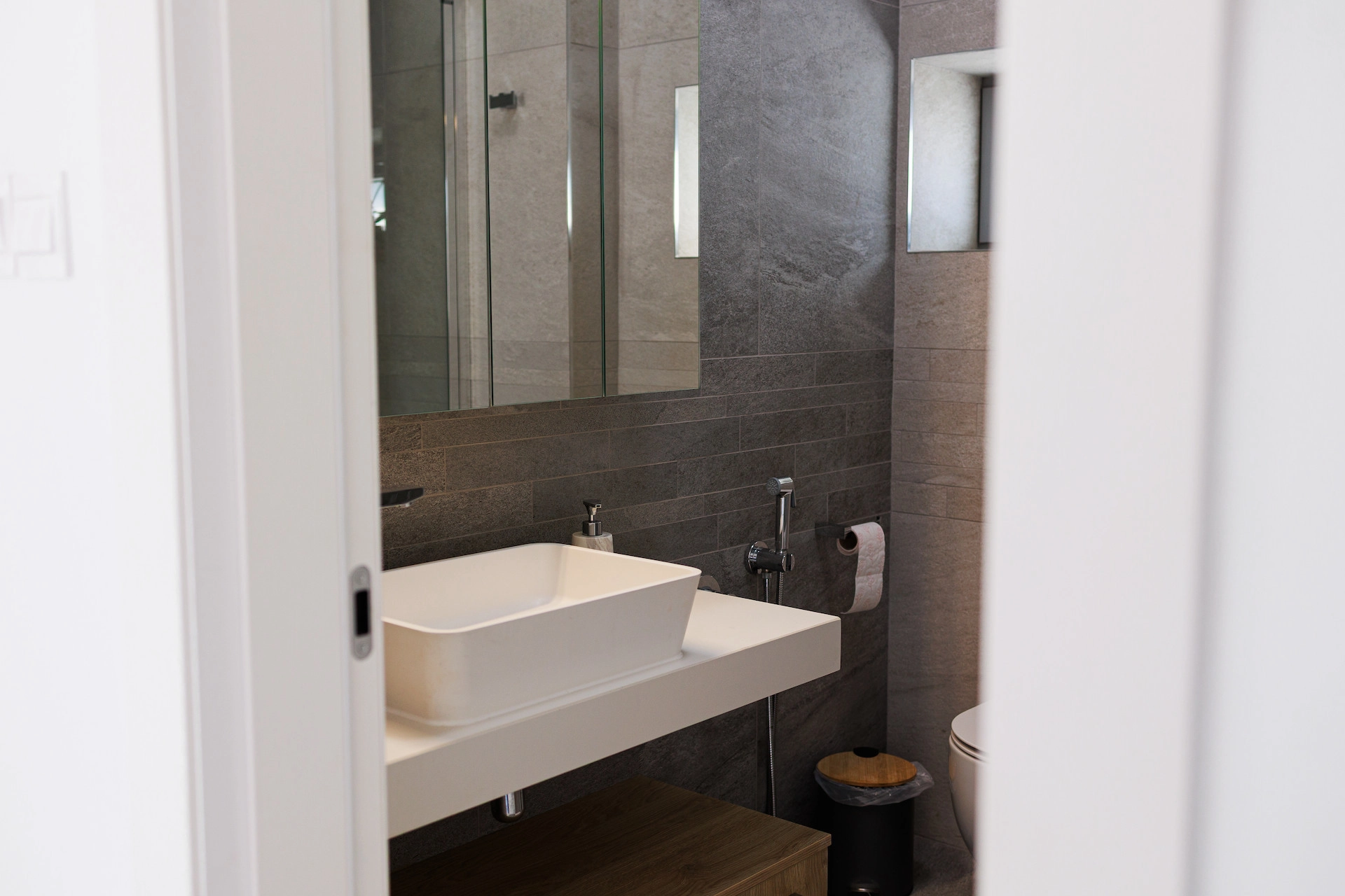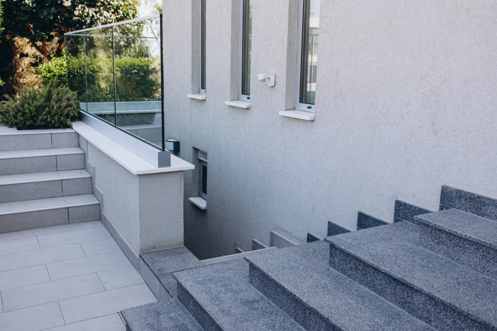A versatile, self-contained level with a separate entrance, featuring three rooms with natural light—ideal for a guest suite, office, gym, or wellness space—along with a kitchenette, two shower rooms, storage, and ventilation system.