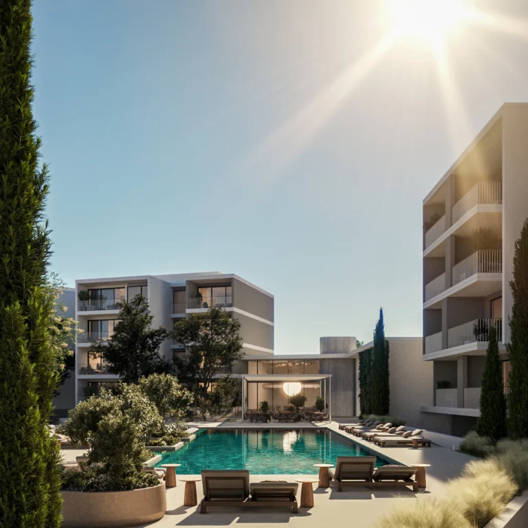 Expansive resort-style pools under the Mediterranean sun