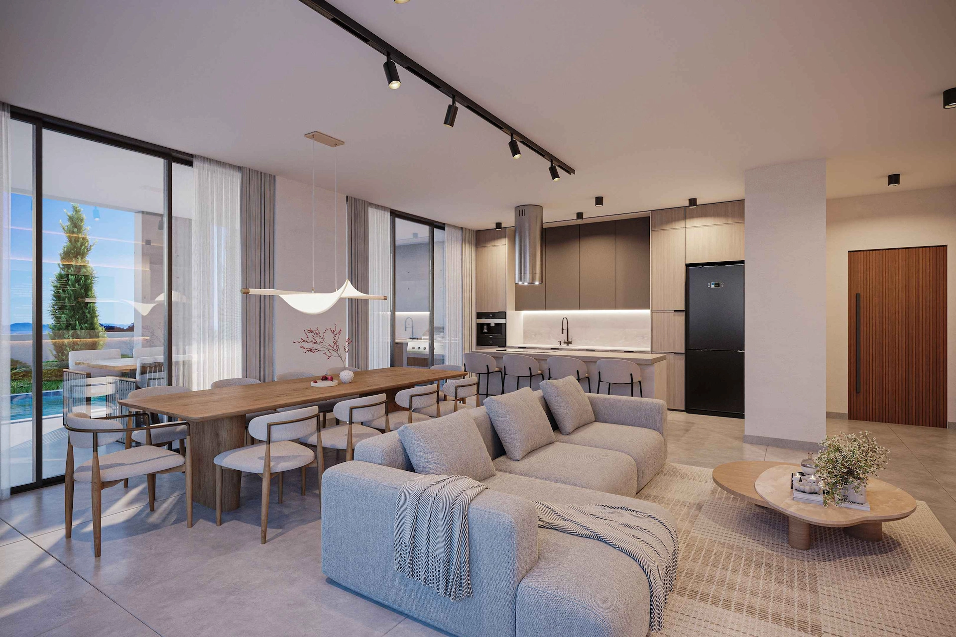 Expansive open-plan interiors seamlessly extend to outdoor living areas, offering a true indoor–outdoor lifestyle that embraces the beauty of Cyprus.